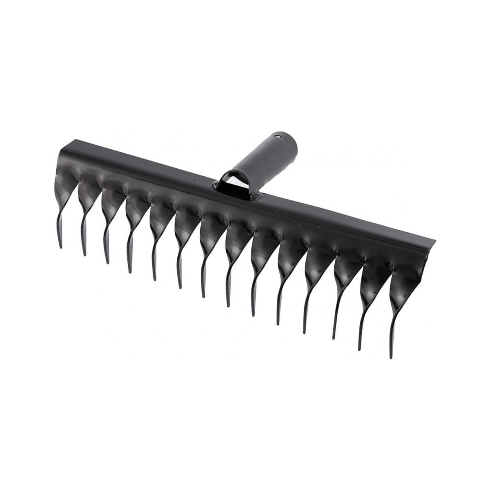 Классические усиленные грабли КЭС ширина 410 мм, 14 витых зубьев, тулейка 30 мм, без черенка 21010078 предназначены для сбора садового мусора, а также рыхления легких видов почвы. Полотно изготовлено из конструкционной углеродистой стали обыкновенного качества, что гарантирует надежность использования. Порошковое покрытие надежно защищает инструмент от коррозии. Тулейка позволяет насаживать инструмент на черенок диаметром 30 мм. Ширина зуба - 10 мм.