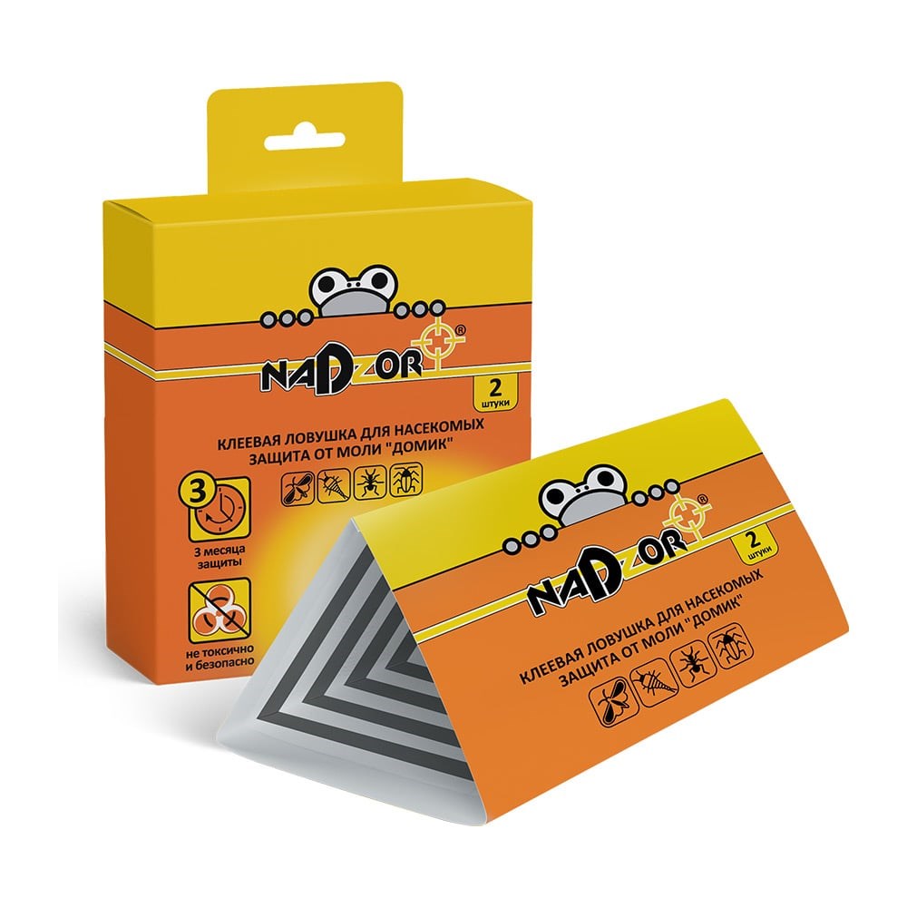 Клеевая ловушка для защиты от пищевой моли Nadzor Домик 122393 в виде домика предназначена для защиты от пищевой моли. В комплект входит два домика-ловушки. Способ ловли: на клеевой слой с атрактантом (ароматическая приманка для насекомого). Ловушку можно применять для ловли: пищевой моли; тараканов; муравьев; чешуйницы. Клеевой слой активен - 3 месяца.