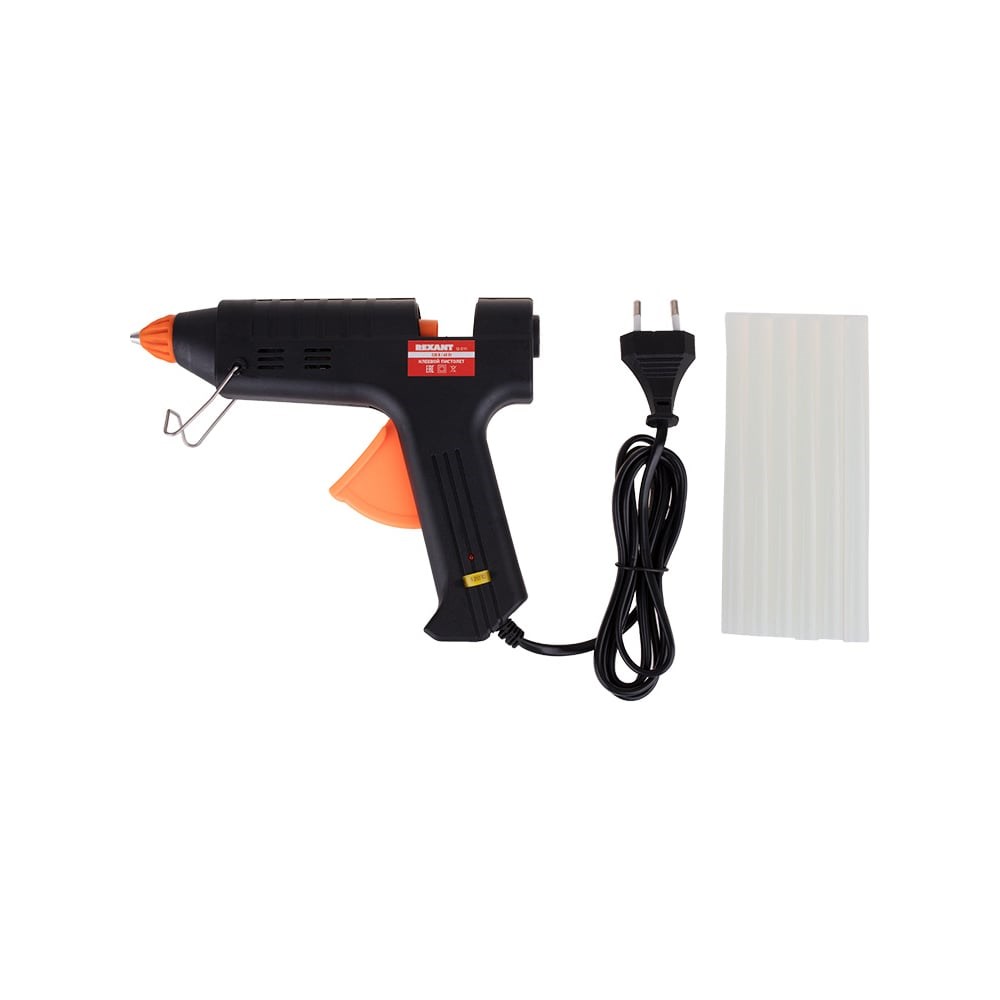 Пистолет клеевой REXANT (60 Вт, Ø11 мм) предназначен для прочной фиксации поверхностей с помощью расплавленной клеевой массы. Принцип работы: клеевой стержень плавится в металлической камере с помощью нагревательного устройства и для точного дозированного нанесения при нажатии на курок подается из сопла на склеиваемую поверхность. Используется в моделировании, рукоделии, при выполнении мелкого ремонта, для изготовления упаковочной и сувенирной продукции, монтажа электрических плат, декорирования, и т.п. Для работы с пистолетом необходимо использовать клеевые стержни диаметром 11 мм. Универсальные клеевые стержни прочно соединяют в любом сочетании детали из картона, ткани, древесины, кожи, резины, керамики, пластика, стекла, металла, пенопласта и т.д. С помощью механизма подачи клея и выходного сопла возможно равномерное или точечное нанесение клея на поверхность. Корпус клеевого пистолета изготовлен из ударопрочной пластмассы и имеет скобу для установки в режиме ожидания.