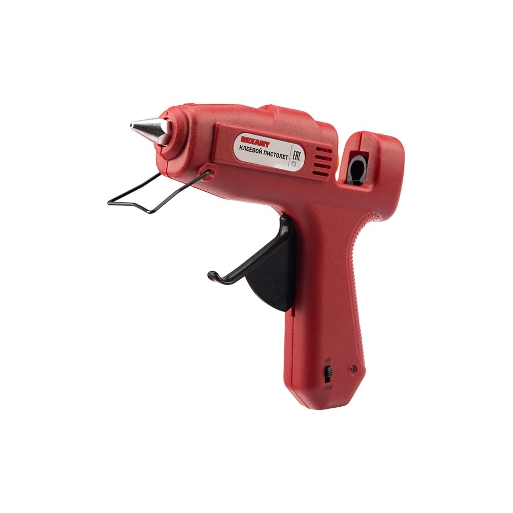Пистолет клеевой REXANT (100 Вт, Ø11 мм) предназначен для прочной фиксации поверхностей с помощью расплавленной клеевой массы. Принцип работы: клеевой стержень плавится в металлической камере с помощью нагревательного устройства и для точного дозированного нанесения при нажатии на курок подается из сопла на склеиваемую поверхность. Используется в моделировании, рукоделии, при выполнении мелкого ремонта, для изготовления упаковочной и сувенирной продукции, монтажа электрических плат, декорирования, и т.п. Для работы с пистолетом необходимо использовать клеевые стержни диаметром 11 мм. Универсальные клеевые стержни прочно соединяют в любом сочетании детали из картона, ткани, древесины, кожи, резины, керамики, пластика, стекла, металла, пенопласта и т.д. С помощью механизма подачи клея и выходного сопла возможно равномерное или точечное нанесение клея на поверхность. Корпус клеевого пистолета изготовлен из ударопрочной пластмассы и имеет скобу для установки в режиме ожидания.