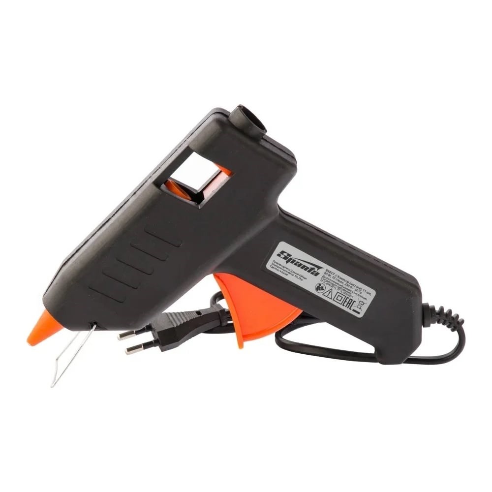 Клеевой пистолет Sparta 930305, 11 мм, 80 Вт, пригодится при проведении несложных бытовых работ: склеивания бумаги, дерева, пластика и других материалов. Он станет незаменимым помощником для частных мастеров, которые занимаются мелким ремонтом, упаковкой, сборкой различных моделей и рукоделием. Время нагрева до максимальной температуры не превышает 5 минут.