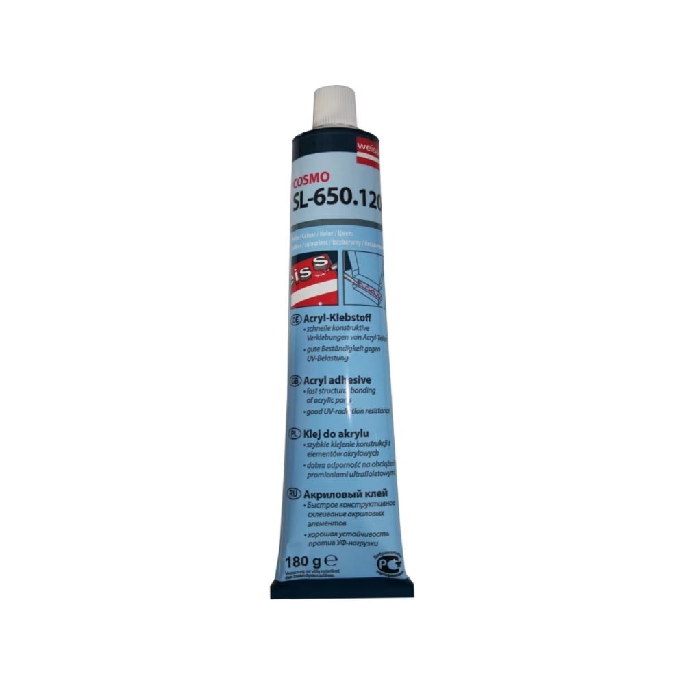 COSMO SL-650.120 — специализированный клей для конструкционного склеивания акриловых поверхностей, обеспечивающий высокую прочность соединений. Продукт отличается повышенной устойчивостью к температурным воздействиям и УФ-излучению, что делает его идеальным для долговечных конструкций. Благодаря тиксотропной формуле клей не стекает с вертикальных поверхностей, формируя вязкотвердый шов. Применяется в рекламной индустрии, при производстве витрин, а также в оконных системах для фиксации акриловых профилей. Отверждение на 90% происходит за 24 часа при стандартных условиях (20°C, 50% влажности), полная стабилизация достигается в течение 8 недель. Технические характеристики Тип: COSMOFEN PMMA (акриловый клей). Вес: 180 г. Выход: 8 г/п.м (ширина 20 мм), 16 г/п.м (ширина 40 мм). Линейка: SL. COSMO SL-650.120 — надежное решение для профессионального склеивания акрила, сочетающее технологичность и долговечность. Его устойчивость к внешним факторам, простота применения и широкая сфера использования делают продукт оптимальным для промышленных и коммерческих задач. Рекомендован для проектов, требующих высокой эстетики и прочности соединений.