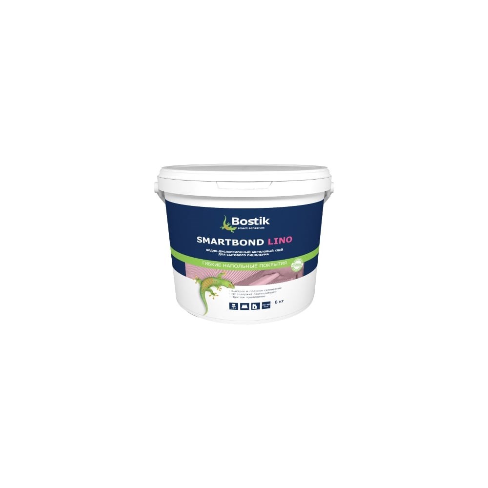 SmartBond LINO (СмартБонд Лино) – водно-дисперсионный акриловый клей для укладки бытовых ПВХ покрытий. Применяется для покрытий на тканевой, вспененной, полиэстровой основе. SmartBond LINO предназначен для использования внутри помещения по прочным впитывающим основаниям, таким как:подготовленные бетонные поверхности;стяжки на цементной основе;ангидридные стяжки;ранее уложенный старый паркет, подготовленный должным образом;фанера, ДСП, OSB.Может использоваться для укладки ковровых покрытий. Не рекомендуется для укладки натурального линолеума.