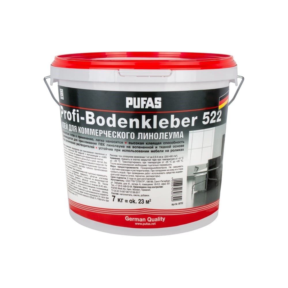 Клей для коммерческого линолеума и ПВХ покрытий Pufas усиленный Profi-Bodenkleber мороз. (7кг)