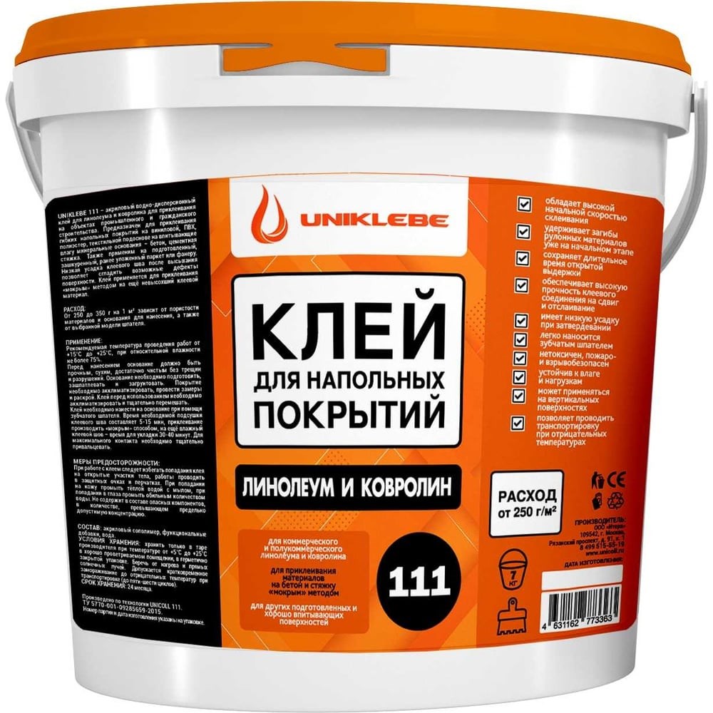 UNIKLEBE 111 - акриловый водно-дисперсионный клей для линолеума и ковролина для приклеивания на объектах промышленного и гражданского строительства. Предназначен для приклеивания напольных покрытий на виниловой, ПВХ, полиэстер, текстильной подоснове на впитывающие влагу минеральные основания - бетон, цементная стяжка. Также применим на подготовленный, зашкуренный, ранее уложенный паркет или фанеру. Низкая усадка клеевого шва после высыхания позволяет сгладить возможные дефекты поверхности. Клей используют для приклеивания "мокрым" методом на ещё невысохший клеевой материал. Содержит в своем составе дополнительную противоморозную добавку, позволяющую производить транспортировку клея при отрицательных температурах (до пяти-шести циклов замораживания-размораживания). Применение: Для бытового, коммерческого и полукоммерческого линолеума, ковролина и ПВХ покрытий Для впитывающих оснований: бетон, стяжка, отштукатуренные, деревянные, древесностружечные, гипсокартонные, асбестоцементные основания Для укладки на ранее уложенный паркет, предварительно зашкуренный Для приклеивания на пол и стены «мокрым» методом Может применяться на вертикальных поверхностях Для работ внутри помещений Расход: от 250 до 350 г/кв. м (зависит от пористости материалов и основания для нанесения, а также от выбранной модели шпателя).