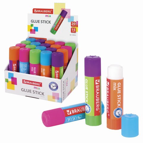 Клей-карандаш BRAUBERG MIX, 15 г, PVP основа, 229072