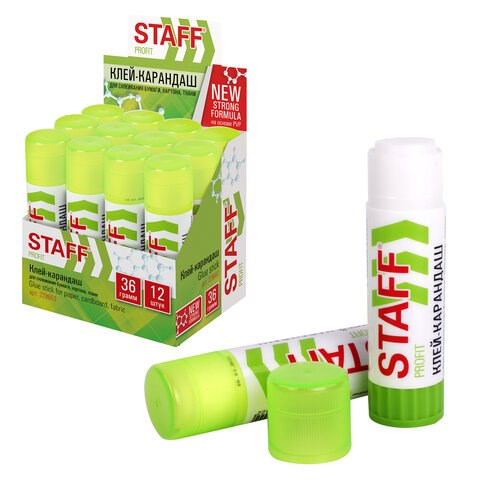 Клей-карандаш УСИЛЕННЫЙ STAFF Profit, 36 г, PVP-основа, 228663