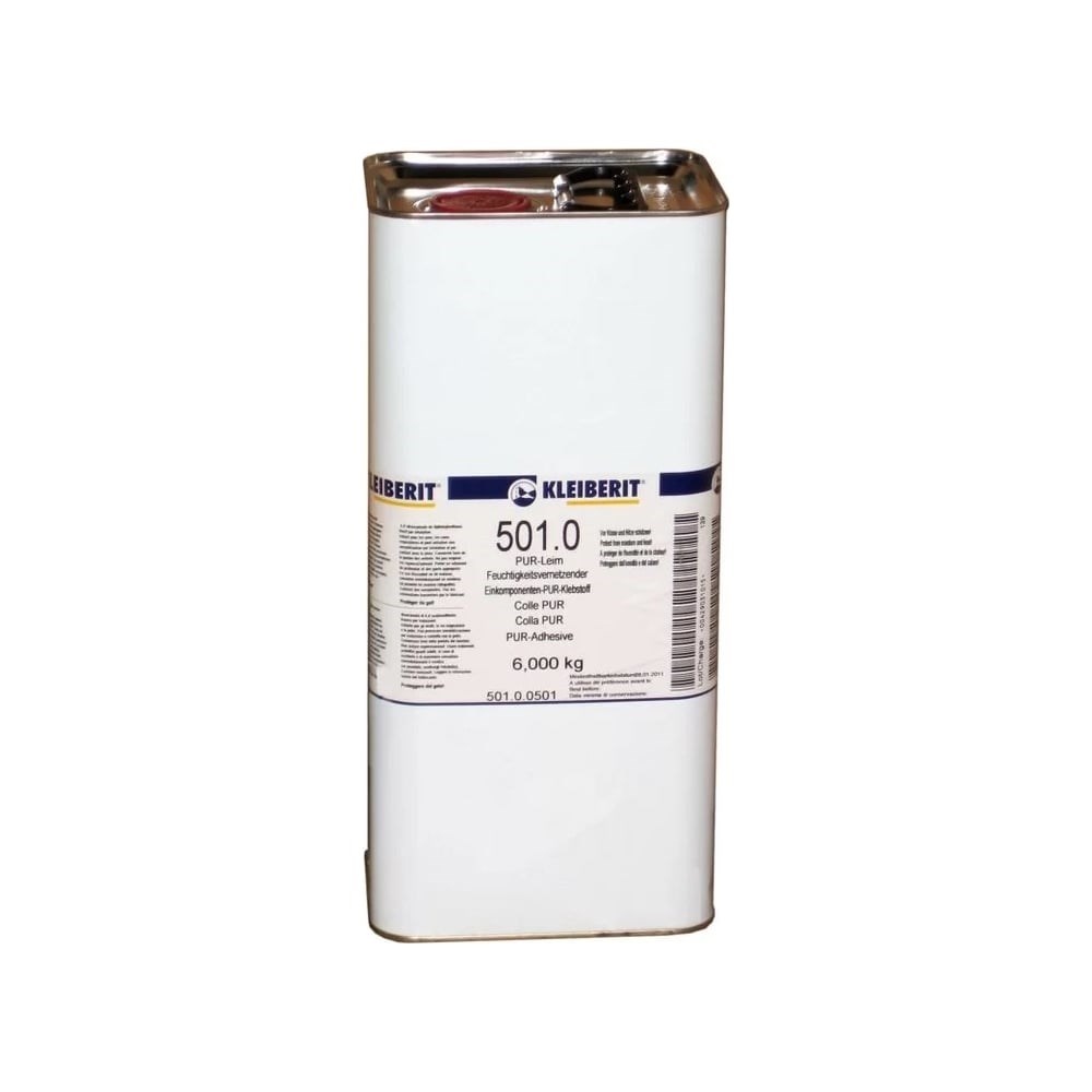 Клей Kleiberit ПУ 501.0 6 кг, Д4 KLB0594.3 - это однокомпонентный полиуретановый клей для склеиваний с силовым замыканием и с высокой температуростойкостью. Области применения: Склеивание окон и дверей, лестниц, слоистых плит для внутреннего и внешнего применения (снаружи с защитным покрытием). Склеивание минеральных строительных материалов, керамических материалов, бетонных материалов и жестких пенопластов. Дополнительные технические характеристики: Плотность (20 град.): ок. 1.13 г/куб. см. Вязкость: 8.000 мПа.с. Температура переработки: не ниже +5 градусов. Влажность древесины: 8-10% при внутреннем применении, 10-12% при наружном применении. Расход: 100-200 г/ кв. м в зависимости от структуры материала Время открытой выдержки: 20-25 минут. Время прессования: 20 град. - 60 минут; 40 град. - 30 минут, 60 град. - 10 минут. Время дополнительного склеивания: 2-3 часа. Окончательная прочность: после 24 часов при достаточном доступе влаги. Цвет: желтовато-коричневый.