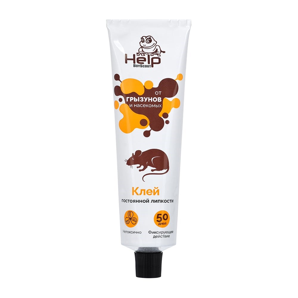Клей постоянной липкости, тюбик 135гр HELP 80281 применяется для создания ловушек для грызунов. Простое в применении, высокоэффективное и нетоксичное средство, не содержит ядовитых веществ. Клей постоянной липкости относится к механическим средствам уничтожения грызунов, наиболее эффективен в отношении мышей. Применяется для самостоятельного изготовления ловушек. Для борьбы с грызунами (мыши, крысы) нанести клей на подставки с гладкой поверхностью (дерево, пластик, стекло и т.д.) полосой шириной 0.5-1 см для мышей или 2-3 см для крыс. Расставить подставки в местах наиболее вероятной миграции грызунов. Для большей эффективности рекомендуется использовать приманку. Не имеет неприятного запаха.