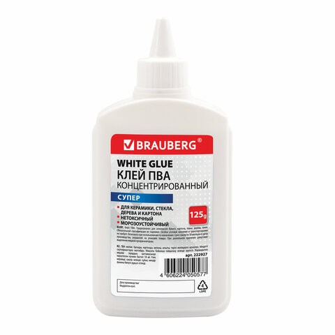 Клей ПВА-СУПЕР BRAUBERG (керамика, ткань, кожа, дерево, бумага, картон), 125 г, 222927