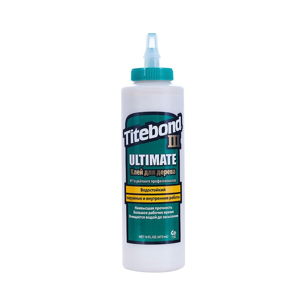 Клей повышенной влагостойкости Titebond III Ultimate 1414 - влагостойкий однокомпонентный состав для работы с древесиной. Подходит для внутреннего и наружного применения. Хорошо поддается шлифованию. В случае допущения помарок легко очищается водой. Может использоваться даже с разделочными досками (т. е. допускается к непрямому контакту с пищевыми продуктами).