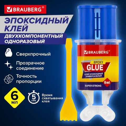 Клей универсальный эпоксидный шприц (смола+отвердитель) 3+3 мл суперпрочный, BRAUBERG EXTRA, 608104