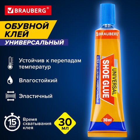 Клей универсальный обувной водостойкий BRAUBERG EXTRA, 30 мл, прочный, блистер, 608105