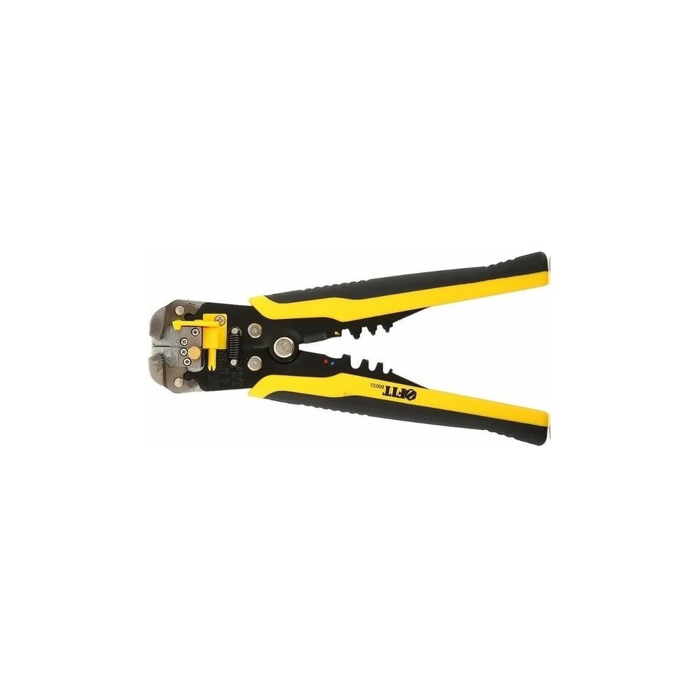 Клещи-автомат для зачистки изоляции Профи FIT 60033 оснащены усиленными губками. Инструмент предназначен для работы с различными проводами. Возможно не только снятие изоляции, но и обжимка клемм. Клещи-автомат выполнены из прочного материала и отмечены высоким качеством. Полное снятие изоляции происходит за один цикл сжатия рукояток.