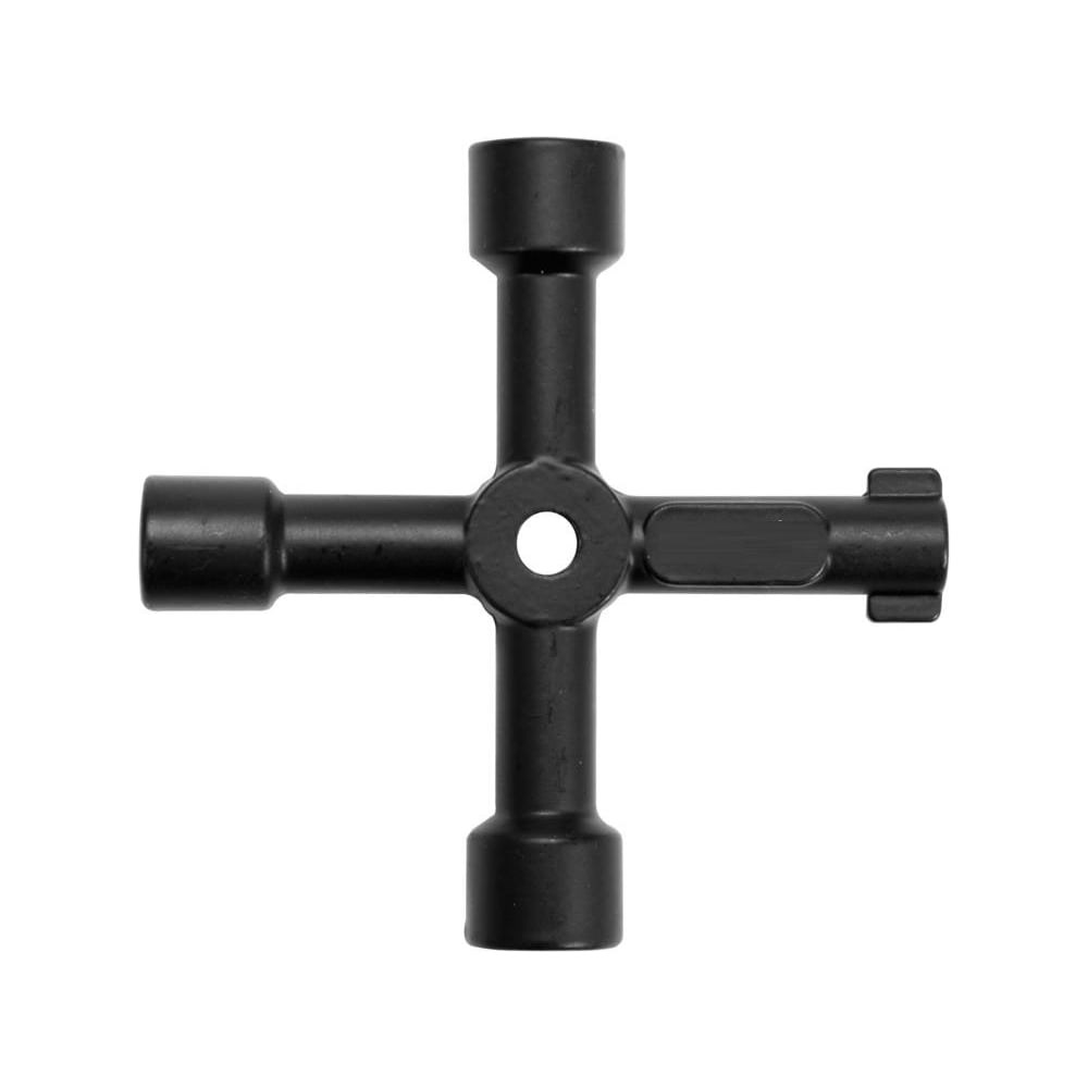 Ключ для сервисных шкафов предназначен для открытия наиболее популярных замков, используемых в ящиках с водой, газом, электричеством и счетчики электроэнергии и другие аналогично защищенные. Ключ отлит из сплава на основе цинка. Поверхность покрыта порошковой краской черного цвета.