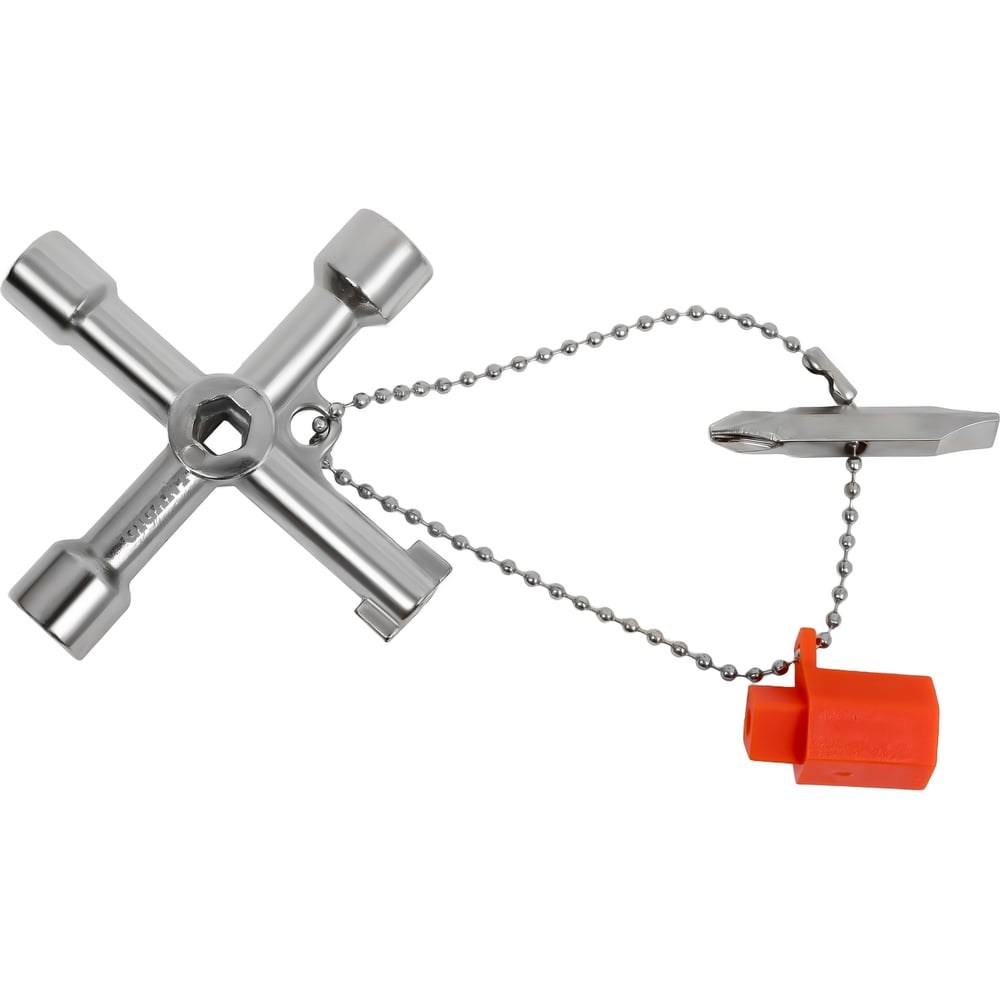 Ключ к шкафу Gigant GK-1 применяется для открытия электрических и сантехнических шкафов, в коммуникациях зданий и транспорта, а также в системах рециркуляции воздуха. Благодаря простой форме и небольшим размерам инструмент удобно использовать и носить с собой. Двусторонняя бита совместно с адаптером для нее закреплена на цепочке. Материал ключа: цинковый сплав. Профили: квадрат - 5/6/8 мм., треугольник – 9 мм., круг с двумя бороздками – 3-5 мм.