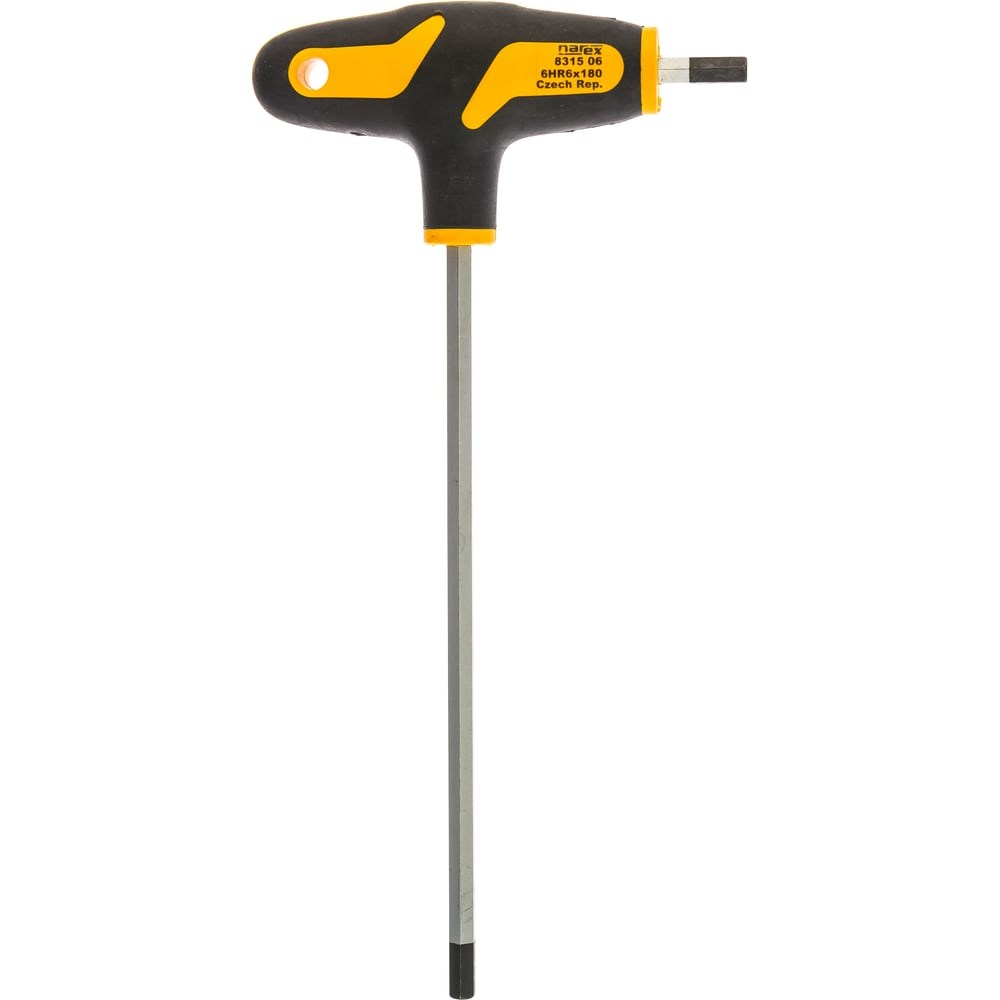 Ключ HEX NAREX Т-образная ручка SW 6,0 l=180 мм 831506 предназначен для обслуживания резьбовых соединений с профилем HEX. Ключ оснащен двумя стержнями из легированной стали с черненым наконечником. Т-образная форма двухкомпонентной рукоятки удобна для работы в тяжелых условиях.