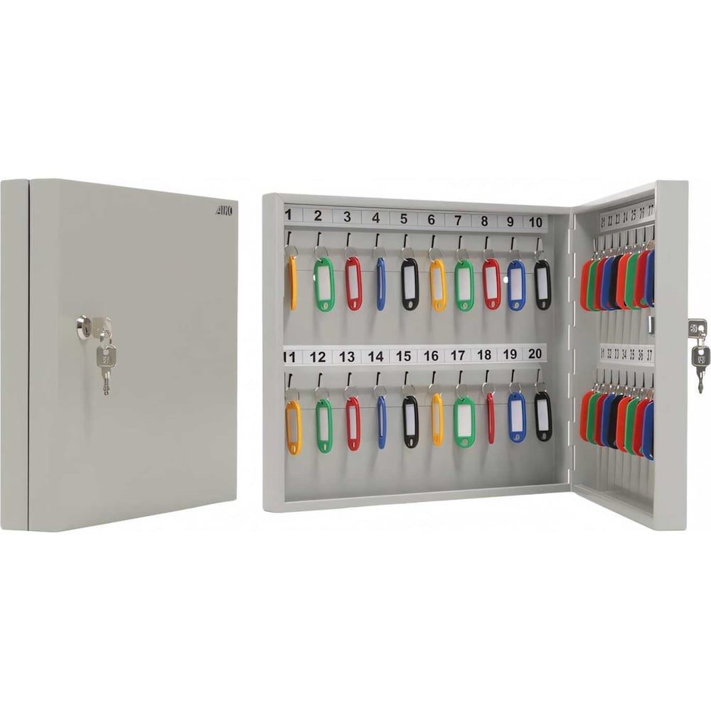 Ключница AIKO KEY-40 S183CH011500 используется в офисе, на предприятии и других организациях для размещения ключей от кабинетов или помещений. Ключевой замок обеспечивает сохранность содержимого. Изделие выполнено из стали толщиной 0.9 мм. В комплекте поставляются брелоки с самоклеящимися номерками для маркировки ключей.