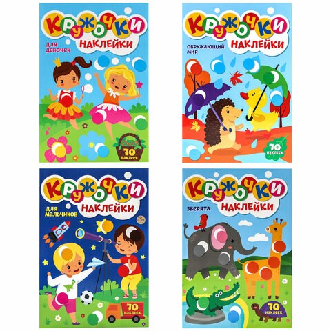 Книжка – игра "Кружочки с наклейками", ассорти, 12 стр., 164х224 мм, ПП