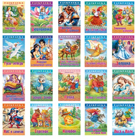 Книжка-раскраска "Любимые сказки", ассорти, 16 стр., 210х290 мм, HATBER