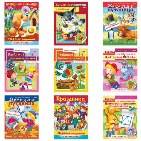 Книжки с наклейками "Тесты и задания", КОМПЛЕКТ 10 шт., А5, 16 стр., HATBER