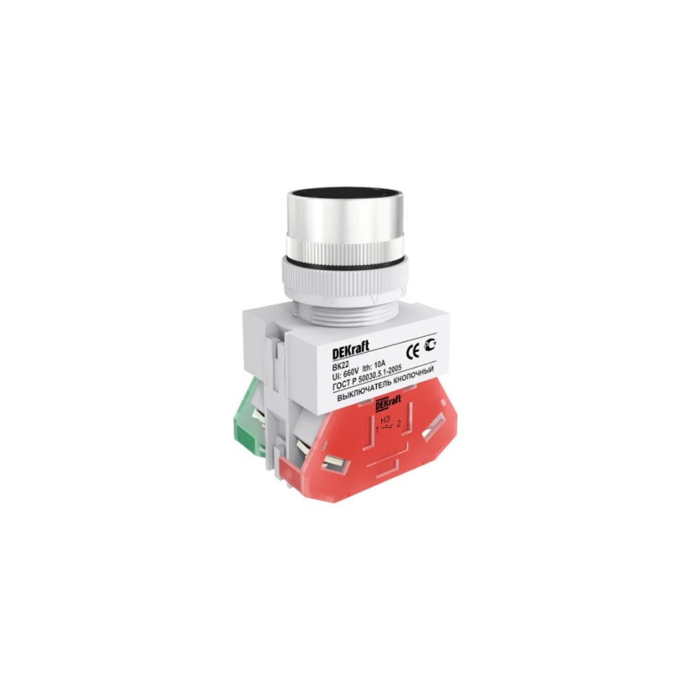 Выключатель кнопочный серии ВК-22 Dekraftс потайным толкателемчерныйбез индикациином.ток 10 Аустановка - на панели или дверистепень защиты - IP54подключение - винтовыми зажимамиВыключатели кнопочные ВК-22 предназначены для коммутации электрических цепей и индикации состояния электрических цепей. Применяются в сетях переменного тока частотой 50/60 Гц с напряжением до 660В. Могут устанавливаться на подвижных и неподвижных частях стационарных установок.