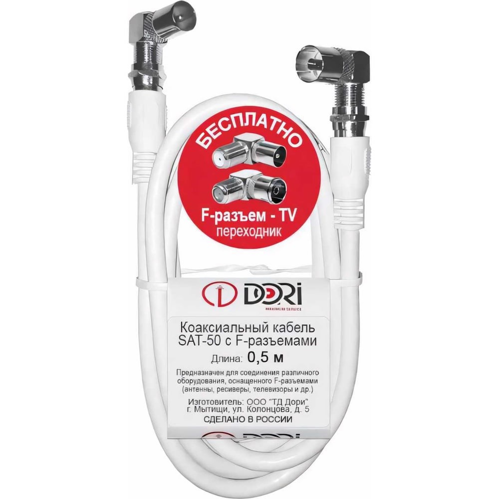 Коаксиальный телевизионный кабель DORI SAT-50 0,5 м F-разъем-F-разъем + TV-переходник 40736