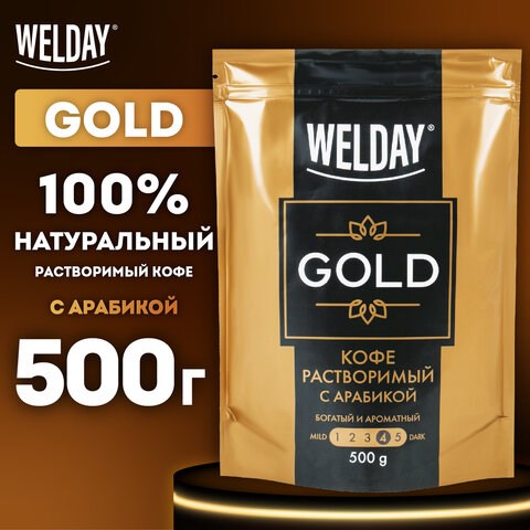 Кофе растворимый WELDAY (ВЭЛДЭЙ) "GOLD" 500 г, БРАЗИЛИЯ, арабика, сублимированный, в упаковке Zip-Lock, 622673