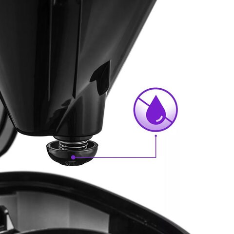 Устройство работает от сети, мощность — 900 Вт, что обеспечивает стабильное и равномерное приготовление. В комплекте — многоразовый нейлоновый фильтр, который легко моется и не требует постоянной замены бумажных аналогов. Также предусмотрена система «капля-стоп»: при извлечении кофейника поток кофе временно останавливается, чтобы вы могли налить себе напиток даже во время заваривания.
