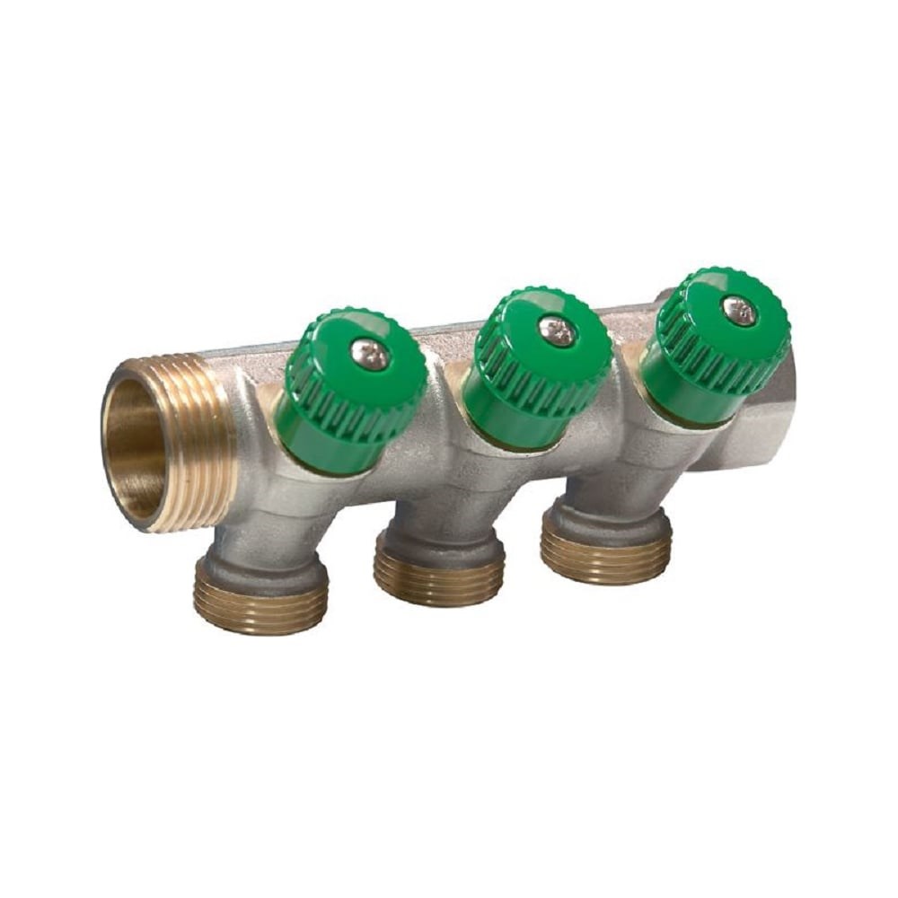 Коллектор с вентилями Comisa 1-3/4-3 выхода, никель 8820090 - коллекторная гребенка. Для отопления и водоснабжения. Позволяет регулировать интенсивность потока рабочей среды.