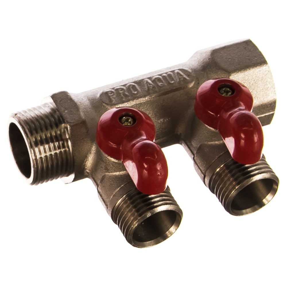 Коллектор с отсекающими кранами (плоскость) PRO AQUA 3/4, 2 х 1/2 V100.02-m20-f20 - назначение изделия - равномерное распределение потока транспортируемой жидкости на нескольких потребителей с возможностью отключения каждого из него. Устанавливаются на сетях водоснабжения и отопления, рассчитаны на работу при температуре до 110 градусов длительно и до 120 кратковременно. Рабочее давление не должно превышать 10 атмосфер. Краны должны находится в полностью открытом или полностью закрытом состоянии и не применяются для регулирования потока. Безопасны для питьевой воды Внимание! Изображение товара является условным, при выборе ориентируйтесь на технические характеристики.