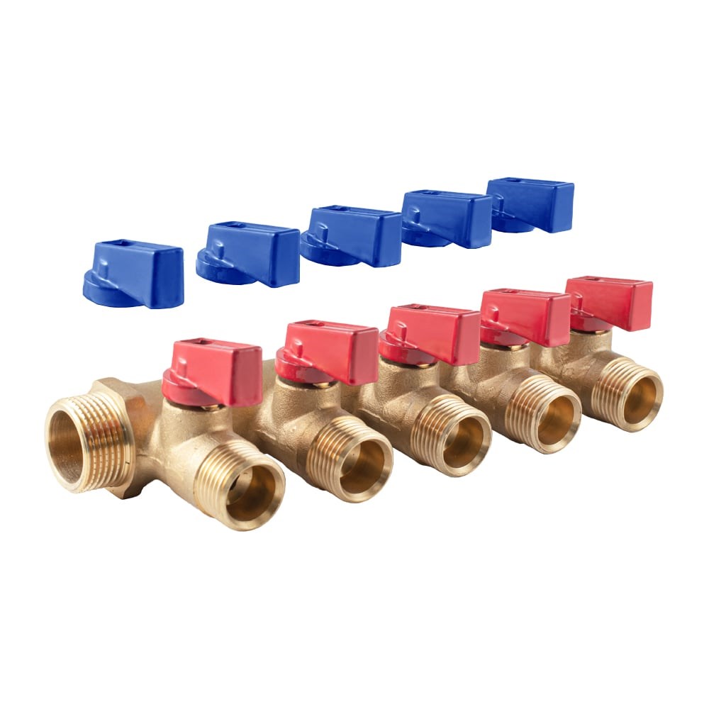 Коллектор с шаровыми кранами PROFACTOR в/н 3/4" х 5 вых 1/2"нар PF MV 264.5 используется в системах водоснабжения, водяного радиаторного или напольного отопления для распределения рабочей среды в системе. Каждая труба системы водоснабжения, отопительной системы или теплого водяного пола подключается к отдельному отводу коллектора с шаровым краном, что позволяет осуществлять персональное подключение или отключение источника потребления.