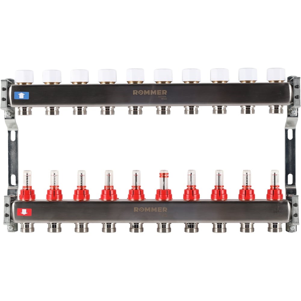 Коллектор из нержавеющей стали ROMMER с расходомерами, 10 выходов Rms-1200-000010 RG0091LAMMNNRT