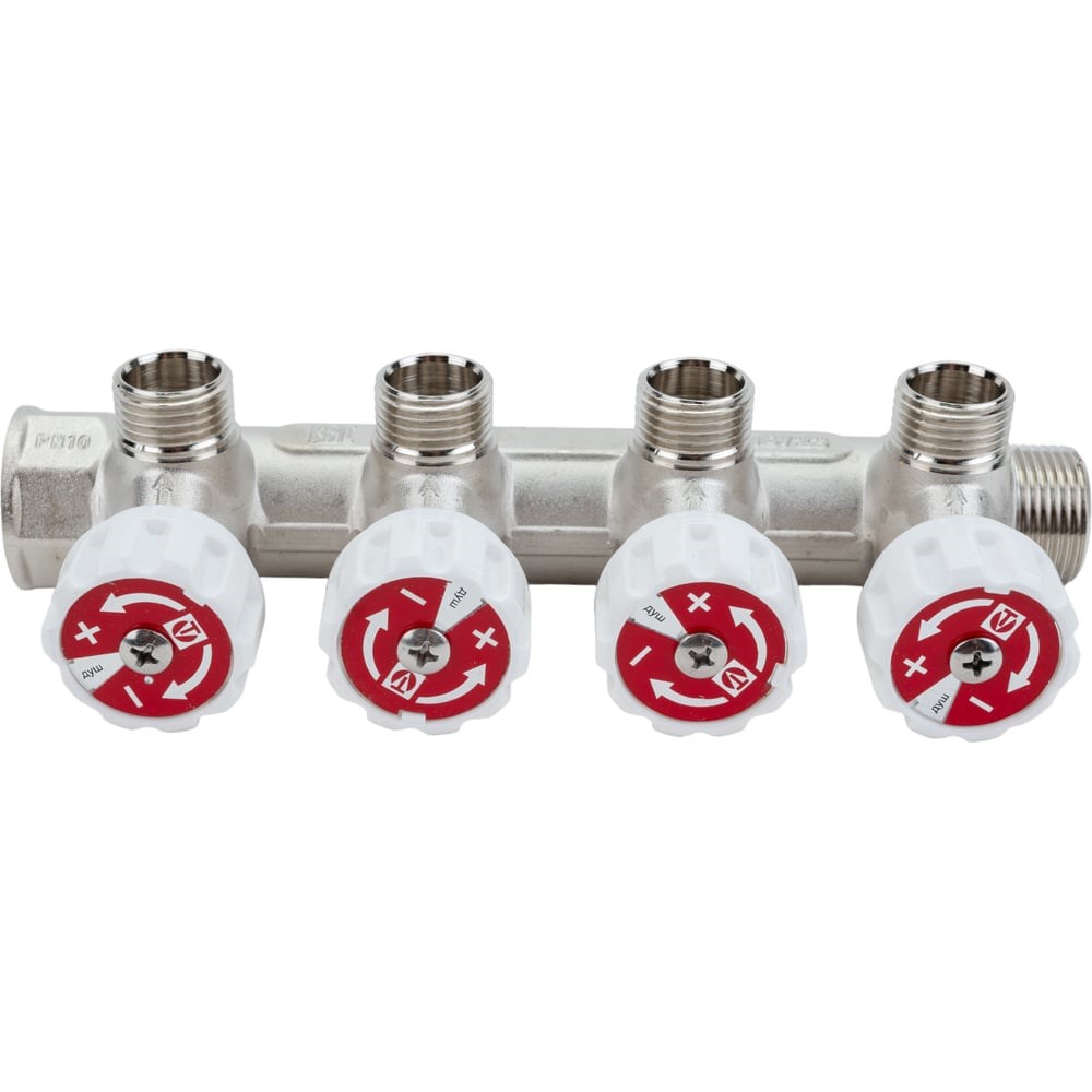 Коллектор с регулирующими вентилями, VALTEC 3/4х4 выход, 1/2 наружная, на подающий трубопровод VTc.570.N.0504
