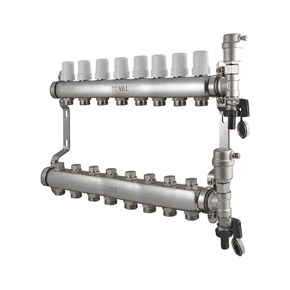 Коллекторная группа Valtec 1x7 выходов евроконус 3/4" нержавеющая сталь в сборе VTc.588.EMNX.0607