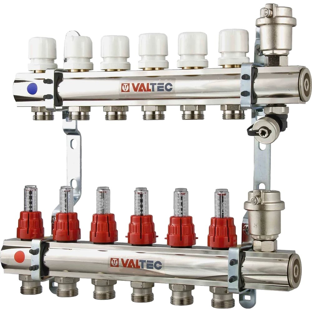 Коллекторная группа Valtec 1x7 выходов евроконус 3/4" со встроенными расходомерами в сборе VTc.596.EMNX.0607