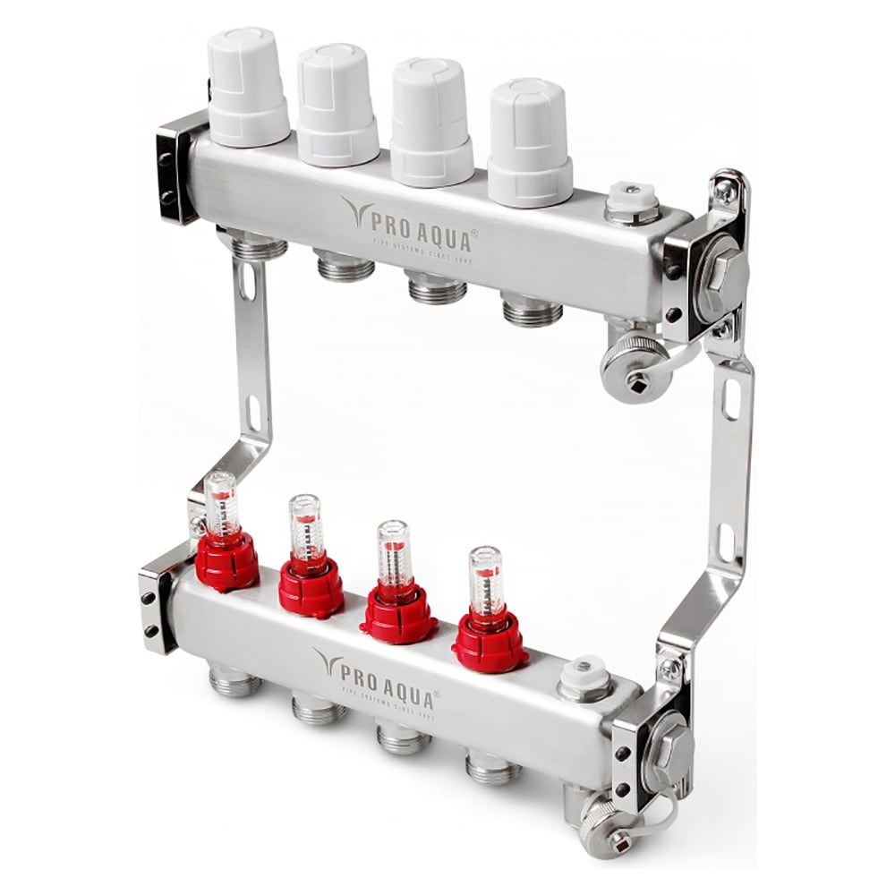 Коллекторный блок с расходомерами PRO AQUA 3 выхода 230 мм, 1 x 3/4 V500MB.03b рекомендуется к использованию при установке теплых полов и других отопительных приборов. Конструкция позволяет регулировать температуру для каждого отдельного контура с помощью расходомера, что обеспечивает оптимальный климат в помещении. Коллекторные группы способны работать как на водяном, так и на гликолевом теплоносителе. Внимание! Изображение товара является условным, при выборе ориентируйтесь на технические характеристики.