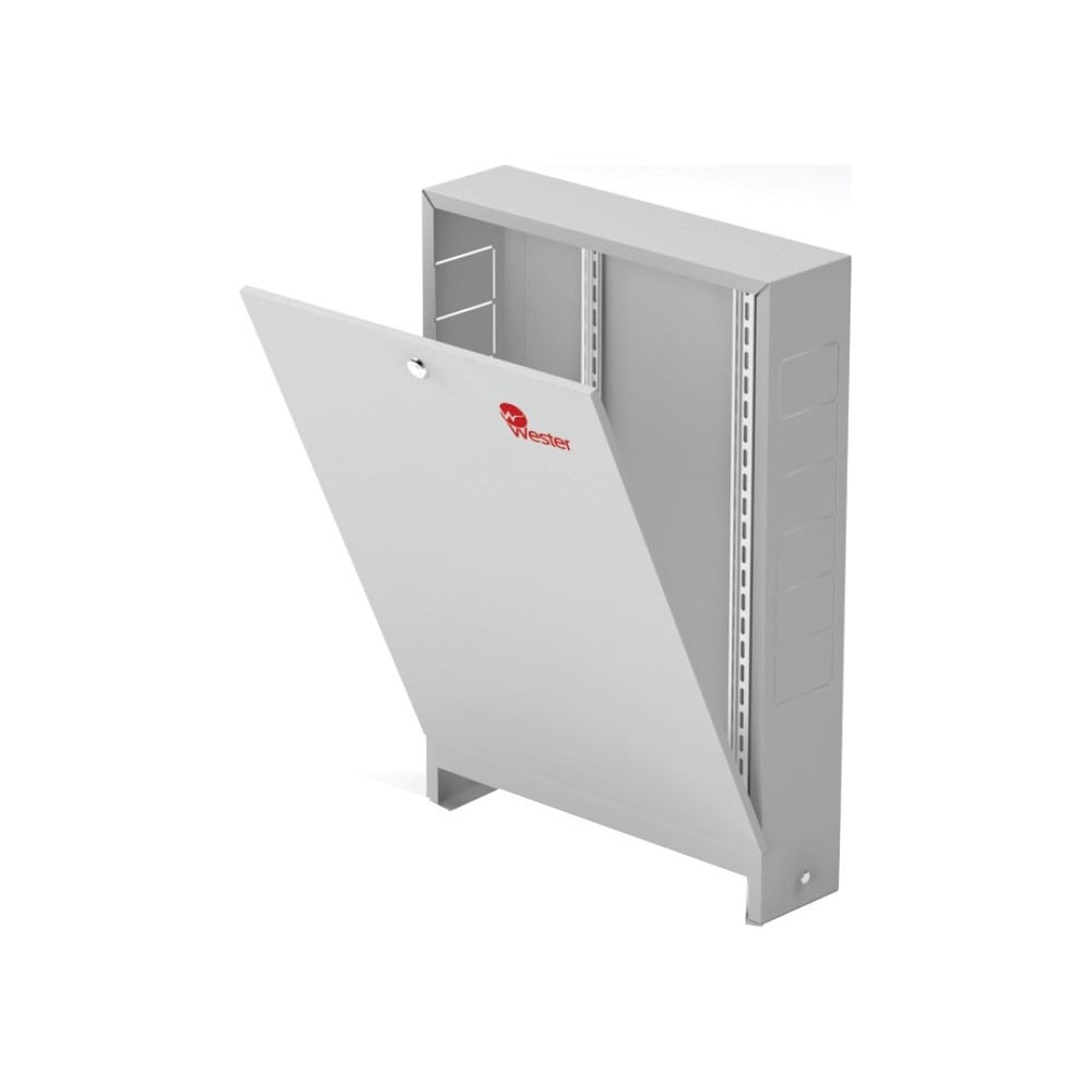 Коллекторный шкаф Wester ШРН-1 предназначен для монтажа в нем распределительных коллекторов для систем отопления, водоснабжения, насосно-смесительных узлов, малых тепловых пунктов и станций поквартирного учёта тепла и расхода воды.Шкаф распределительный наружный ШРН 1.Лицевые поверхности окрашены порошковой эмалью по фосфатной подготовке.Внутри шкафа установлены передвижные монтажные рейки, к которым крепится оборудование.