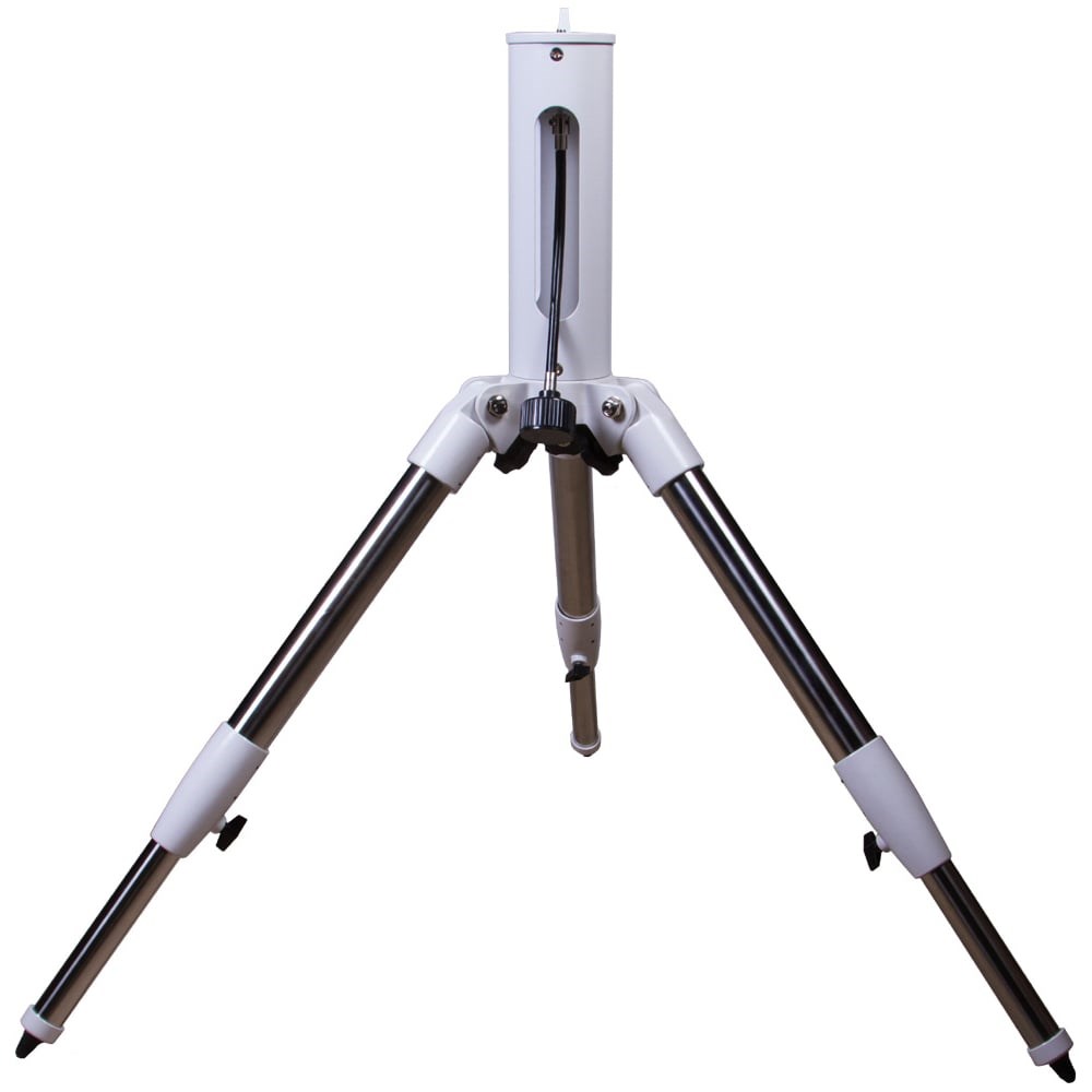 Колонна для монтировок Sky-Watcher AZ-EQ5GT 69853 обладает хорошей устойчивостью и высокой грузоподъемностью. Она более надежно удерживает телескоп, чем стандартная тренога. Колонна создана специально для монтировок AZ-EQ5GT. Монтировка ставится на установочный штифт в верхней части колонны, затем закрепляется центральным винтом-фиксатором. Колонна опирается на стальные ножки, длину которых можно регулировать. Для фиксации высоты треногие используются специальные винты.
