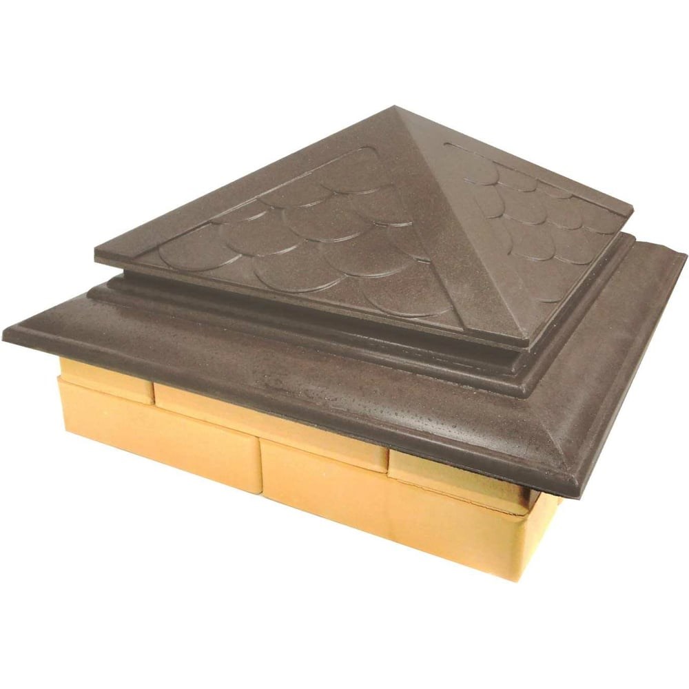 Колпак на столб забора ООО ТК "Титан" Тетто Элит Чешуя (513x513 мм; шоколад) 565621ЧШЭ 2х2 кирпича не только придаст столбам Вашего забора эстетичный и гармоничный вид, но и защитит основной материал столба от разрушающего воздействия окружающей среды. Классическая форма, уникальный рисунок и большой выбор цветов идеально подойдут к любому забору, а капельник не даст воде попадать на столбы. С колпаками Tetto Ваш забор будет защищен на долгие годы.