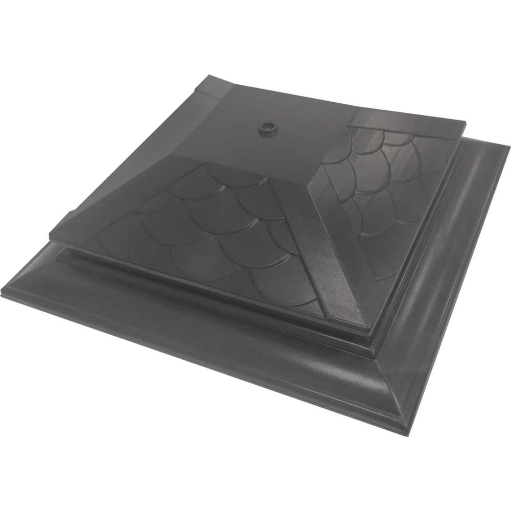 Колпак на столб забора под фонарь ООО ТК "Титан" Тетто Элит Чешуя (513x513 мм; черный) 565617ЧЧЭ 2х2 кирпича не только придаст столбам Вашего забора эстетичный и гармоничный вид, но и защитит основной материал столба от разрушающего воздействия окружающей среды. Классическая форма, уникальный рисунок и большой выбор цветов идеально подойдут к любому забору, а капельник не даст воде попадать на столбы. С колпаками Tetto Ваш забор будет защищен на долгие годы.
