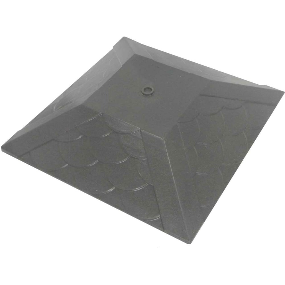 Колпак на столб забора под фонарь ООО ТК "Титан" Тетто Элит Чешуя (385x385 мм; графит) 444410ЧГЭ 1,5 кирпича не только придаст столбам Вашего забора эстетичный и гармоничный вид, но и защитит основной материал столба от разрушающего воздействия окружающей среды. Классическая форма, уникальный рисунок и большой выбор цветов идеально подойдут к любому забору, а капельник не даст воде попадать на столбы. С колпаками Tetto Ваш забор будет защищен на долгие годы.