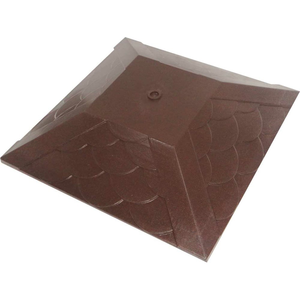 Колпак на столб забора под фонарь ООО ТК "Титан" Тетто Элит Чешуя (385x385 мм; шоколад) 444410ЧШЭ 1,5 кирпича не только придаст столбам Вашего забора эстетичный и гармоничный вид, но и защитит основной материал столба от разрушающего воздействия окружающей среды. Классическая форма, уникальный рисунок и большой выбор цветов идеально подойдут к любому забору, а капельник не даст воде попадать на столбы. С колпаками Tetto Ваш забор будет защищен на долгие годы.