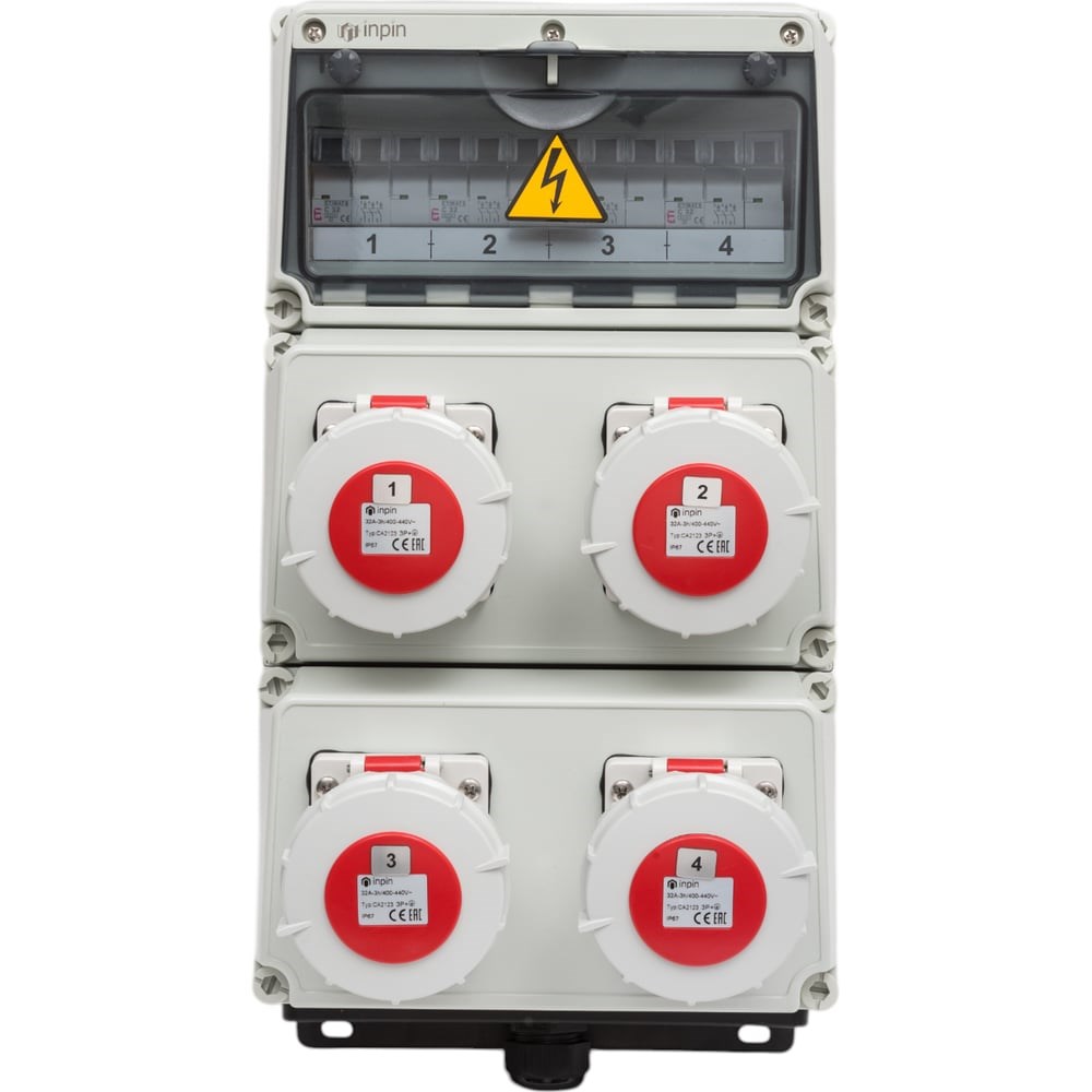 Модификация специально предназначенная для контейнерных терминалов согласно стандарту для контейнерных рефрижераторов с розетками 32A 4-полюсные 400в с ключом на 3 часа. Цвет корпуса RAL 7035. Линейка серии INPIN комплектуются кабельным вводом IP68 с разгрузкой натяжения кабеля. Кабельный ввод М32 (11-21 мм.) 1 шт. Розетка CEE 32A 3P+E 3h 4 шт. Защита выход АВ 3P/C32A/10kA 4 шт.