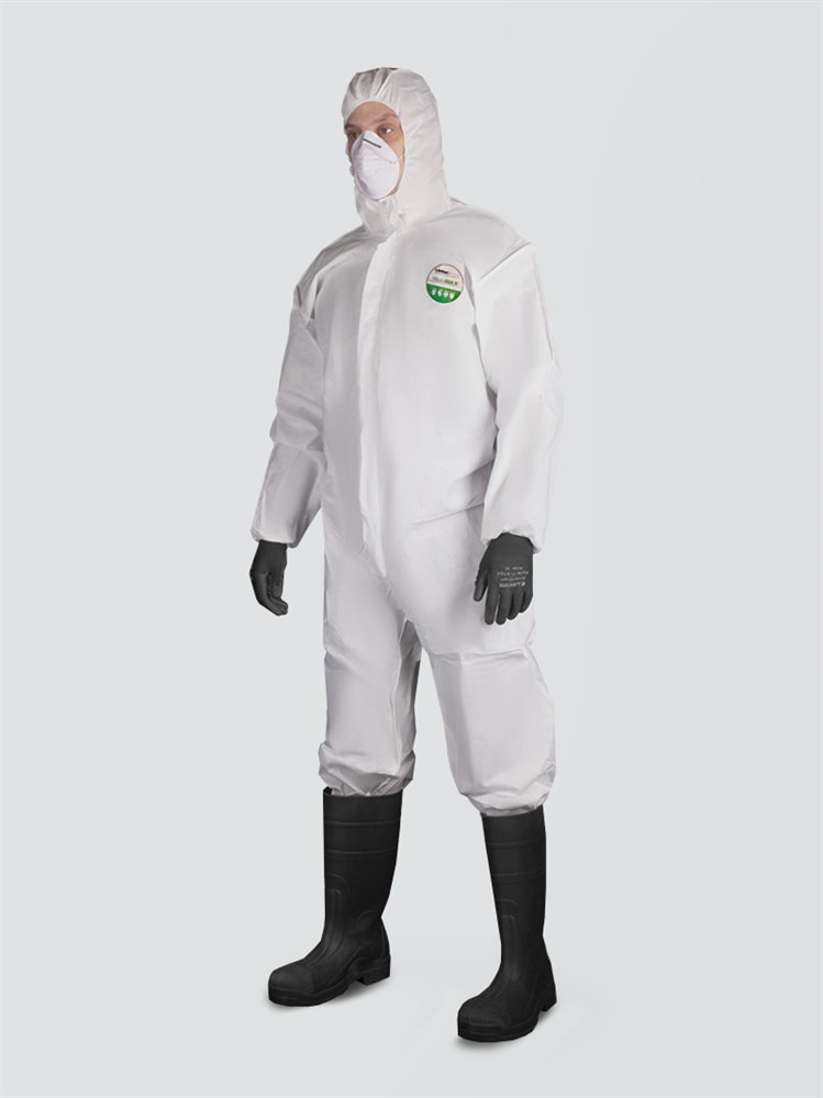 комбинезон категории III (комплексная защита), то есть комбинезон для защиты от разных видов опасных веществ: тип 5 - защита от высоко опасных сухих веществ, тип 6 - защита от небольших брызг жидких химических веществ невысокого класса опасности. Плотность материала- 55г/кв.м
