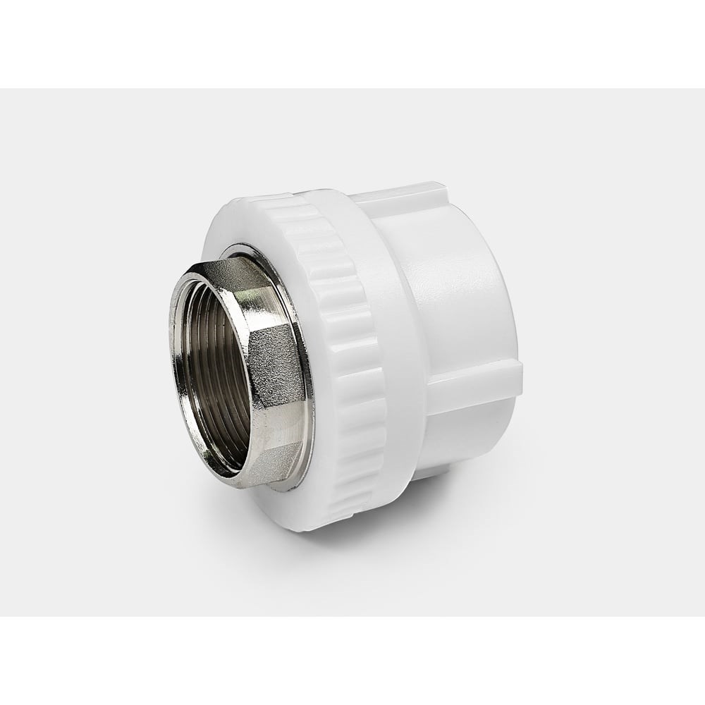 Муфта полипропиленовая комбинированная ВР D50-1 1/2 под ключ КОНТУР предназначена для соединения трубы с резьбовыми фитингами. Подходит для систем отопления и водоснабжения. Оснащена шестигранником под ключ для удобства монтажа. Монтаж: вход - ПП наружный, выход - латунь внутренняя резьба.