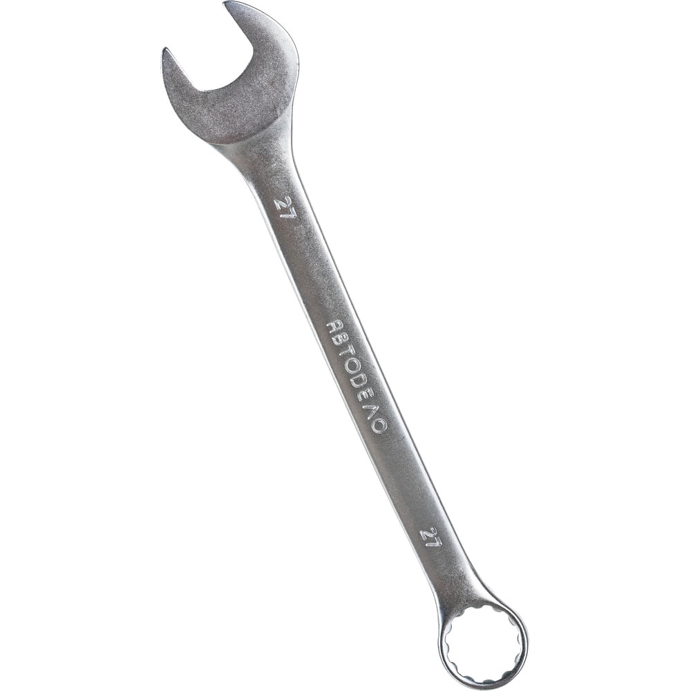 Комбинированный ключ 27х27 АвтоDело 31027 13477 оборудован накидной и рожковой головками. Это позволяет работать с крепежом с боковым и торцевым доступом. Увеличенная ширина основания головок обеспечивает высокую прочность.