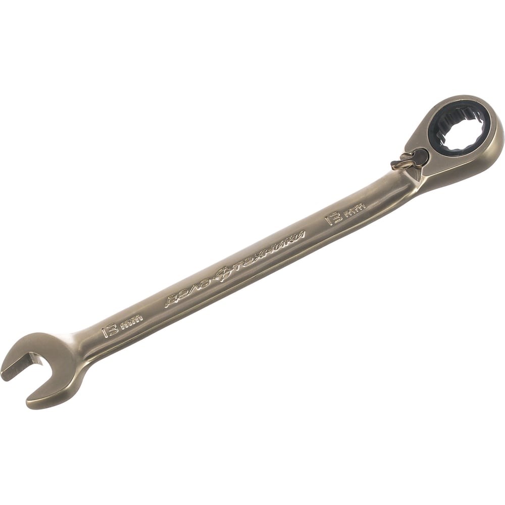 Комбинированный трещоточный ключ с переключателем 13 мм ДТ 200/5 Дело Техники 515213 пригодится на строительно-ремонтной площадке, в автомастерской, на производстве для монтажных работ с резьбовыми соединениями. Корпус из хромванадиевой стали отличается твердостью и долгим сроком службы. Ключ состоит из рожковой головки и трещоточного механизма с переключателем - работает либо на закручивание, либо на откручивание. Накидная часть имеет изгиб под углом 10°