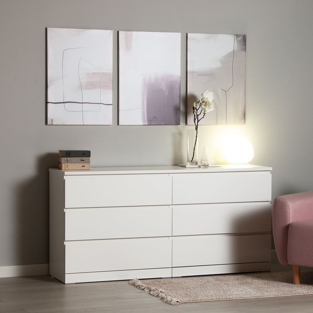 ГУД ЛАКК- знакомая мебель, которую легко купить и собрать!Серия мебели ВАРМА вдохновлена популярными сериями MALM и BILLY от IKEA, и станет идеальным дополнением вашей квартиры. Лаконичный дизайн комодов гармонично впишется в любой интерьер, а компактные размеры не займут много места.Почему выбирают комод ВАРМА 6Д комод 160х77х40?Комод ВАРМА 6 ящиков может служить не только отличным комодом, но и прекрасной ТВ тумбой, максимальная рекомендованная нагрузка на столешницу 15 кг! Ширина столешницы 160 см позволяет использовать поверхность комода эффективно – разместить телевизор с большой диагональю, PlayStation, фоторамки и вазы, а вместительные 6 ящиков позволяют организованно хранить множество вещей: одежду, белье, аксессуары, книги, документы и другие предметы. Это особенно полезно для больших семей или тех, кто ценит порядок и хочет максимально эффективно использовать пространство. КомодВАРМАпредставлен трех вариантах:Белый цвет покрыт прочной эмалью. Эмалевое покрытие создает гладкую, ровную поверхность с приятным матовым блеском, добавляя мебели изысканности и визуальной легкости. Оно устойчиво к царапинам, влаге и выгоранию, что делает комод долговечным и простым в уходе.Цвета "черный ясень" и "беленый дуб"покрыты натуральным шпоном. Шпон сохраняет естественную текстуру древесины, придавая комоду благородный внешний вид и добавляя интерьеру уют и теплоту. Такая мебель выглядит дорого и стильно, оставаясь при этом доступной по цене.