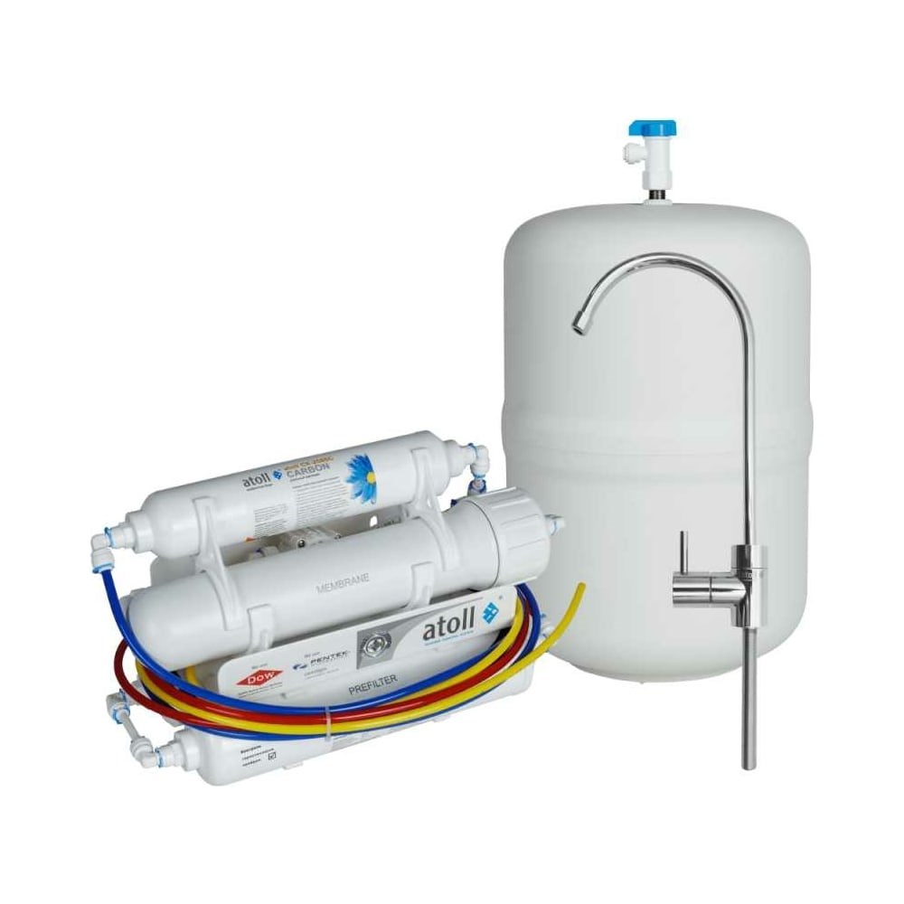 Компактная четырехступенчатая система обратного осмоса atoll Compact A-450 STDA имеет небольшие размеры, прекрасно подходит для домашнего использования. Обеспечивает высокое качество фильтрации водопроводной воды, доводит ее состав до состояния питьевой – она полностью соответствует требованиям безопасности по химическим и бактериологическим показателям.В состав системы входят: префильтр механической очистки atoll MK-5633C 5 мкм, угольный префильтр atoll СK-5633C, обратноосмотическая мембрана atoll TW40-1812-50, угольный постфильтр atoll СК-2586C.В комплекте хромированный кран для питьевой воды.Объем накопительного бака: полный –12 л, полезный –до 8 л.Производительность: 120 л/сутки.
